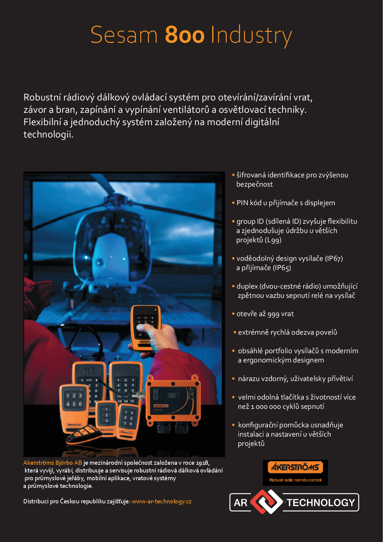 Sesam 800 Industry je robustní rádiový dálkový ovládací systém pro otevírání a zavírání vrat, závor a bran, zapínání a vypínání ventilátorů a osvětlovací techniky. Flexibilní a jednoduchý systém založený na moderní digitální technologii.